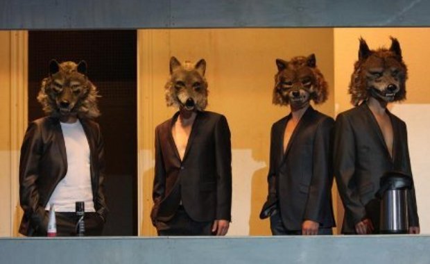 Structure – One thing that leapt out and slapped me on the face second time round – apart from the production’s extraordinary visuals – was the overarching structure of the piece. It made me wonder how I could have missed so much of it initially (I’m inclined to blame all the deer heads, strap-ons and full-frontal nudity, which have the tendency to be a little distracting). It also made me doubly frustrated at all the mainstream reviews that point to the piece’s meandering self-indulgence, as beneath all the deer heads, strap-ons and naked actors there is a carefully planned play full of eerie symmetries and striking symbolism, from which all of those supposedly self-indulgent elements essentially spring.