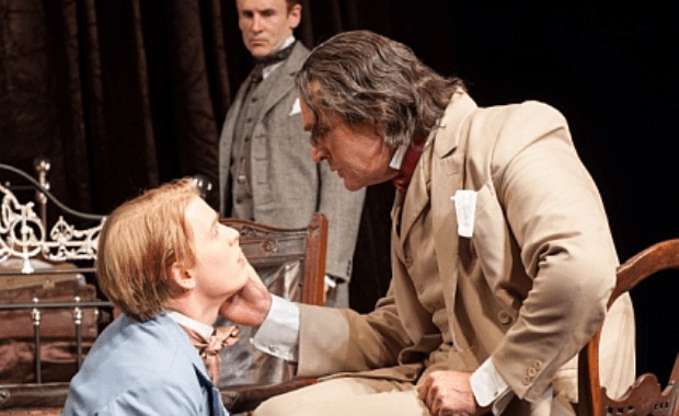 The approach taken by Hare and by this production in particular, however, is no Picasso. All the facial features are firmly in place, if a little manipulated in the case of Rupert Everett’s Wilde, creating a flat, underwhelming symmetry. The production’s portrayal of Wilde is all too literal, seemingly taking more time over his physical nuances than his emotional ones. Everett is rendered almost unrecognisable, obscured beneath a long mop of hair, liberally applied make-up and padded out clothing. But rather than uncannily evoking Wilde, this astute yet oddly clumsy attention to detail lends a cartoonish dimension to a role that, for all Hare’s protests, looks a lot like impersonation. Besides the risk of a disappointing replica, one of the other problematic idiosyncrasies of representation is that the closer the representation approaches to the real, the more glaring the gulf between the two.