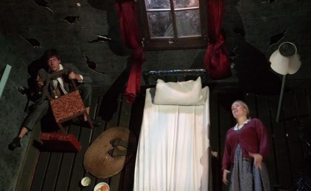 A performer dangles upside down, supported only by the strength of his own body; visual perspectives shift and skew across the split level set, distorting reality; a family home cracks open, metaphorically and literally, at its very centre. There is no question that this production, now six years old and making its fourth visit to the Lyric Hammersmith, remains thrilling in every sense of the word. What is so heart-stopping about the Lyric and Vesturport’s visually virtuosic rendering of Kafka’s nightmarish tale, however, is not the dazzling disbelief that such images be thought to provoke. Instead, the most chilling horror at its core is all too plausible.