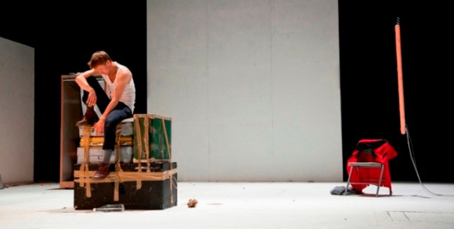 Show 1, while grappling with an equally revered play, has the benefit of reimagining a text that is already fragmented and incomplete. This is where the non-literal, symbolic approach of the Secret Theatre team really pays off, exposing an ugly, oozing wound right in the middle of a play whose implicit social critique is suddenly painfully explicit. Here, the central character (Billy Seymour) is stuck on a punishing treadmill, trapped in a life of unremitting poverty and toil. To eliminate any doubt about the impossibility of his situation, Seymour is tethered to the middle of the stage, able only to go round and round on a pre-determined path, always running but never getting anywhere. The only way to sever this tie is through violence, an answer that is really no answer at all.