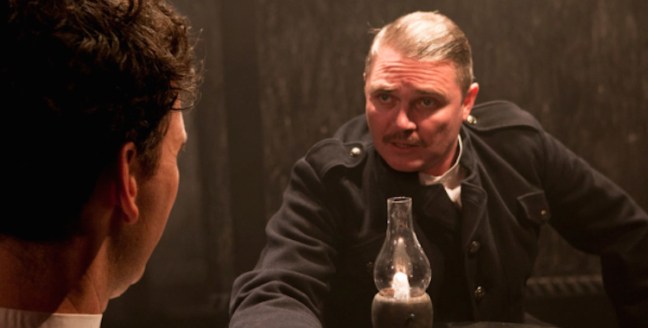 Strindberg’s play captures a family in breakdown. The Captain and Laura’s marriage, under strain for years, finally splinters apart around a pre-paternity test dilemma. How, the Captain begins to ask himself, can he be sure that he is the father of his daughter? With no Jeremy Kyle to solve the mystery, this doubt begins to sour, and Alex Ferns’ bullish, shouty Captain – face dredging up nasty memories of his run as EastEnders baddie Trevor – slowly falls apart, his straight-backed military arrogance gradually unravelling over the course of the action.