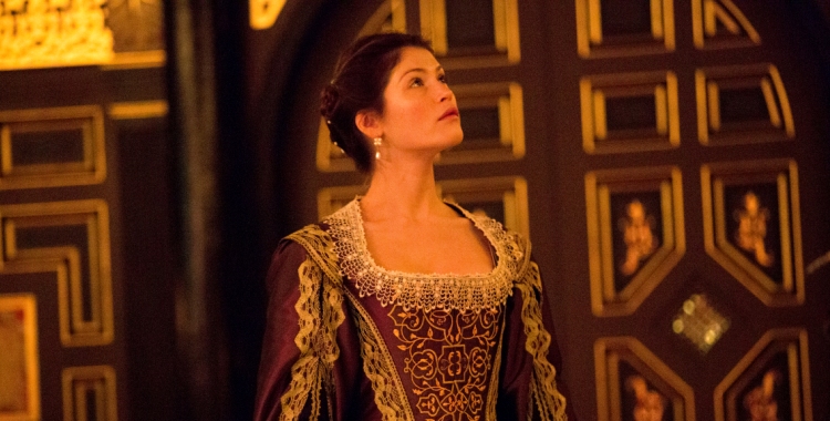 On stepping inside the new Sam Wanamaker Playhouse, the first thing you notice is the wood. From seats to stage to pillars, the whole place is fashioned from the stuff. Other than the beautifully painted ceiling, it’s mostly left bare, immediately drawing attention to the materials used. What is also striking upon entering the space is its intimacy. In stark contrast with the Globe’s 1,500 capacity, the Sam Wanamaker Playhouse has seats for just 340, all of which – right up to the top gallery – feel thrillingly close to the compact stage. Under the dim, shimmering illumination of candlelight, the shadowy auditorium is claustrophobic, sometimes almost oppressively so. The closeness is at once exciting and unsettling.