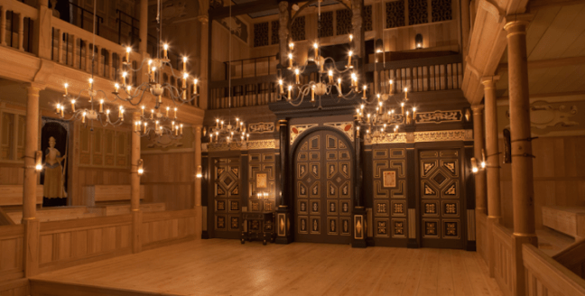 If there’s one thing a new theatre building is capable of doing, as I noted in a blog earlier this week, it’s to refocus our attention on the space in which performance takes place. We’re all too apt to comment on site only when it is accompanied with the word “specific”, ignoring the fact that every piece of theatre is inflected by its surroundings. In considering the first production at the Globe’s new indoor Jacobean theatre, therefore, I’m inevitably going to end up discussing the venue as much as – if not more than – the show. Here, I’m comforted and encouraged by Matt Trueman’s idea of theatre criticism as a team sport; you’ll doubtless be able to read better commentaries on the play and the performances elsewhere, allowing me to happily riff on architecture, candlelight and acoustics.
