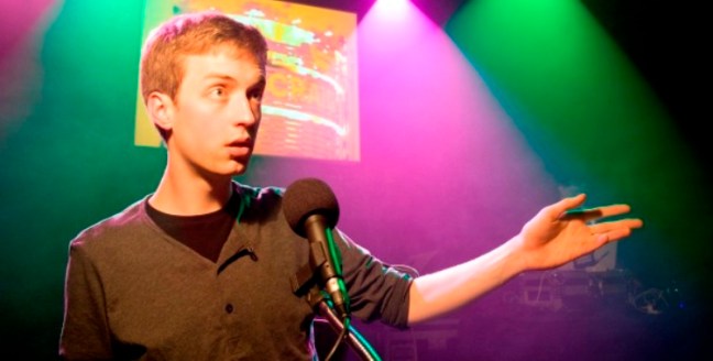 The most disturbing aspect of the dystopian nightmare constructed by George Orwell in 1984 is not the unblinking eye of Big Brother, or the children blithely betraying their parents, or even the terrors of Room 101. What really conjures the cold, black grip of dread is the whispered name of the Thought Police, the idea that the final refuge of the mind might be infiltrated and soiled. It is the untamed power of the mind to resist that holds possibly the greatest subversive power, because thoughts are impossible to capture; as Kieran Hurley breathes into his microphone at the beginning of Beats, eyes wide, “they can’t arrest your imagination – yet.”